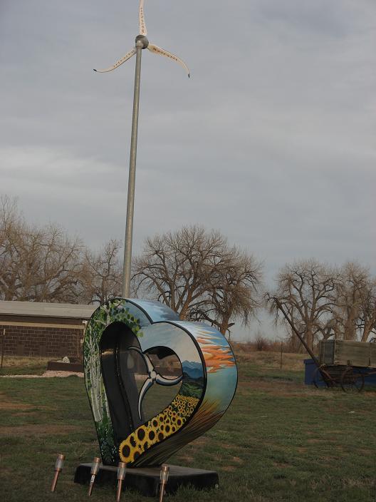 The scenic backdrop for "Serving With a Heart" is a functioning electric generating windmill.   Non functioning windmill blades shown on the heart may be seen in the center of this heart .