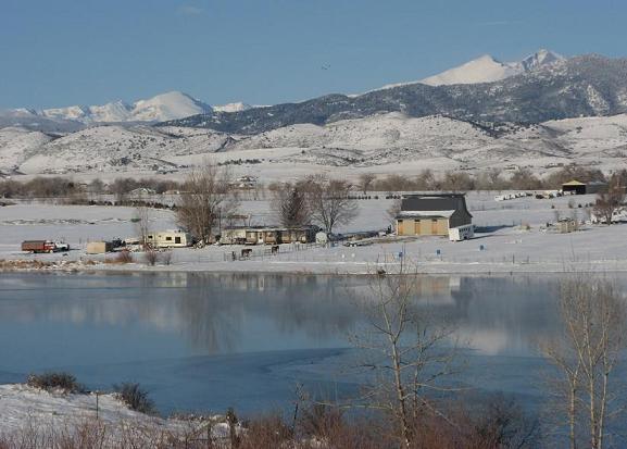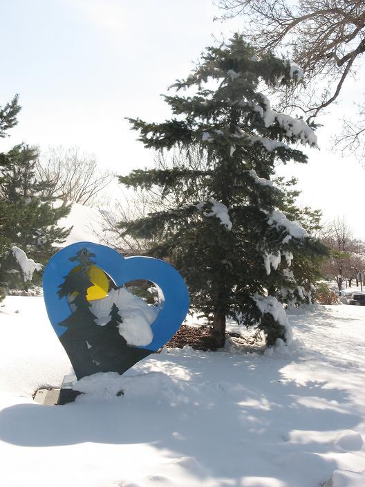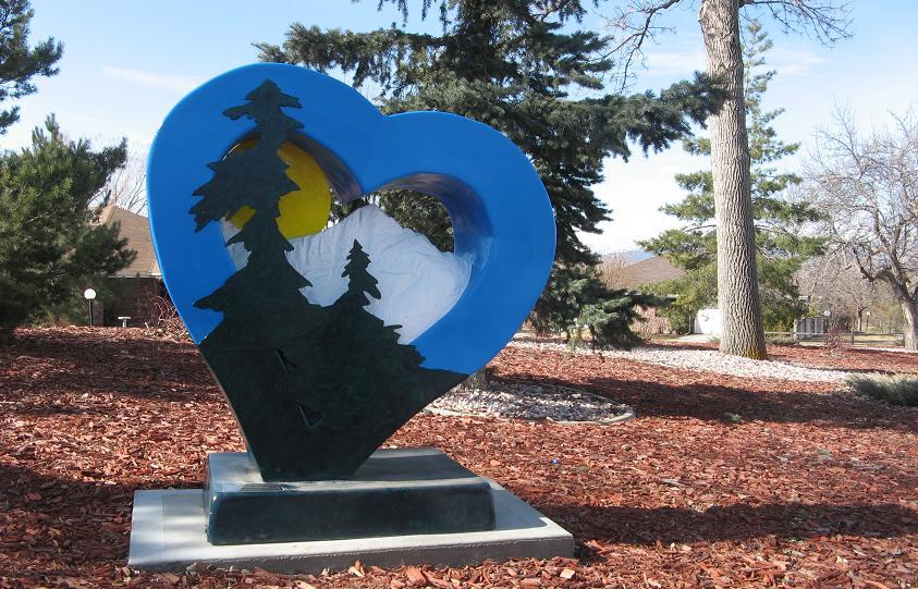 This sculpture has moved since these pictures were taken, and is now on the North West corner of S.Garfield Ave. and Valentine Dr.   In the old location you could look through the sculpture and see Longs Peak, one of Colorado's 14ers, framed in the background.  The picture of Longs Peak below is taken from a site near this heart.